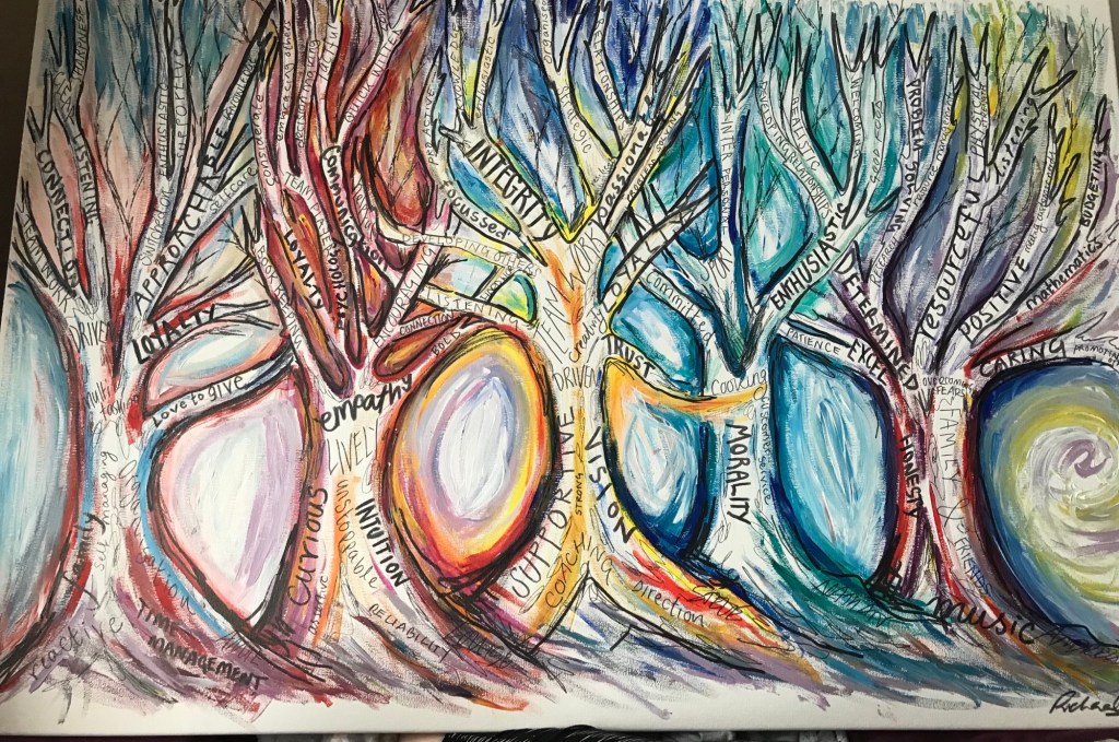 The first stage of my coaching model, I work with clients to focus on their talents and strengths by visualising these. I call this the ‘Tree of Strength’ phase, as quite simply, a tree represents growth, resilience, roots and grounding.
